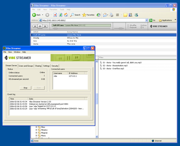 Vibe Streamer is a free program that allows you to stream your music library to any device with a Flash enabled web browser. Vibe Streamer also offers a set of security settings, user controls, and customization features.